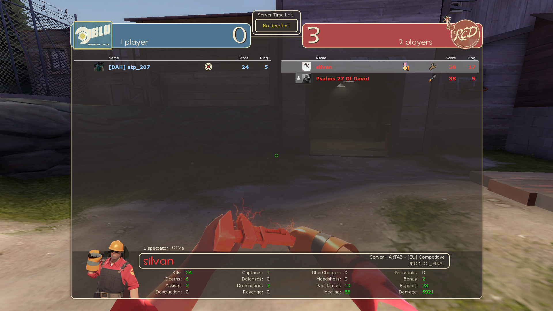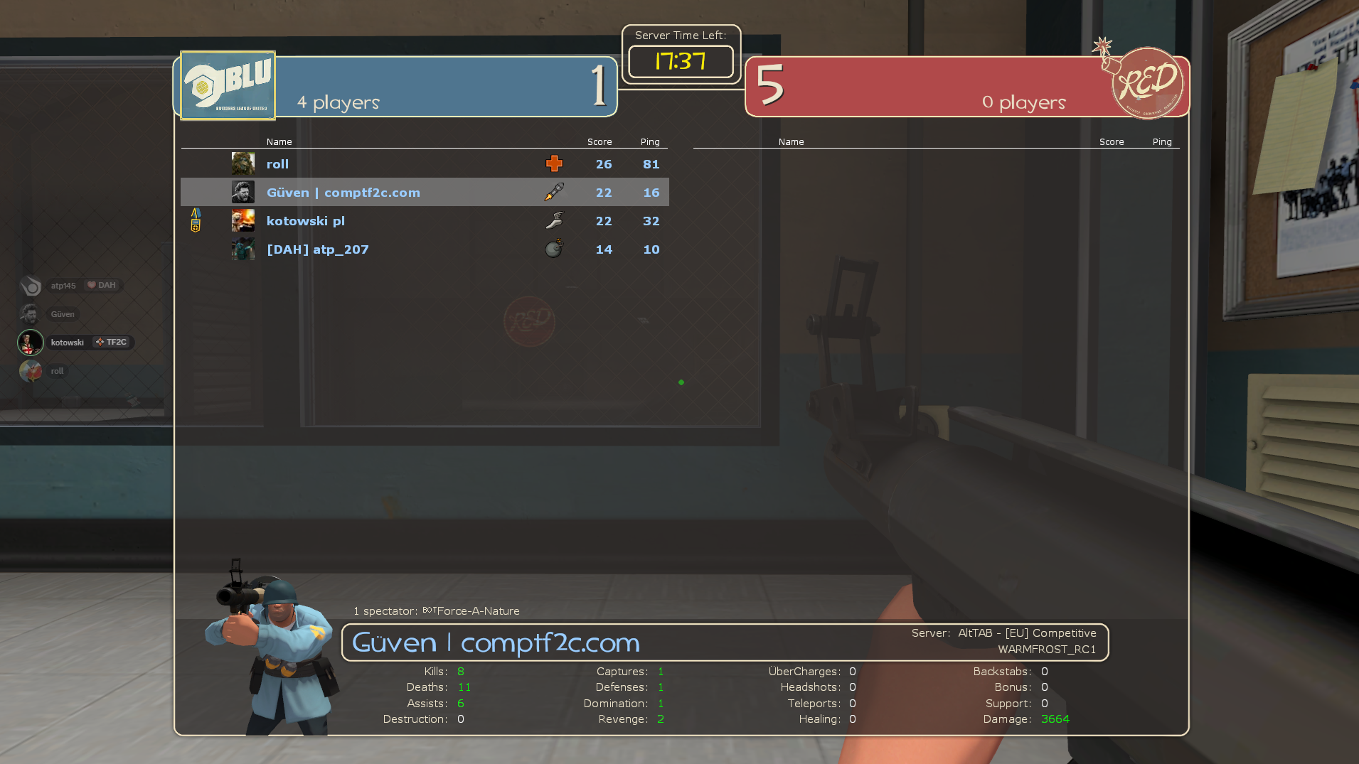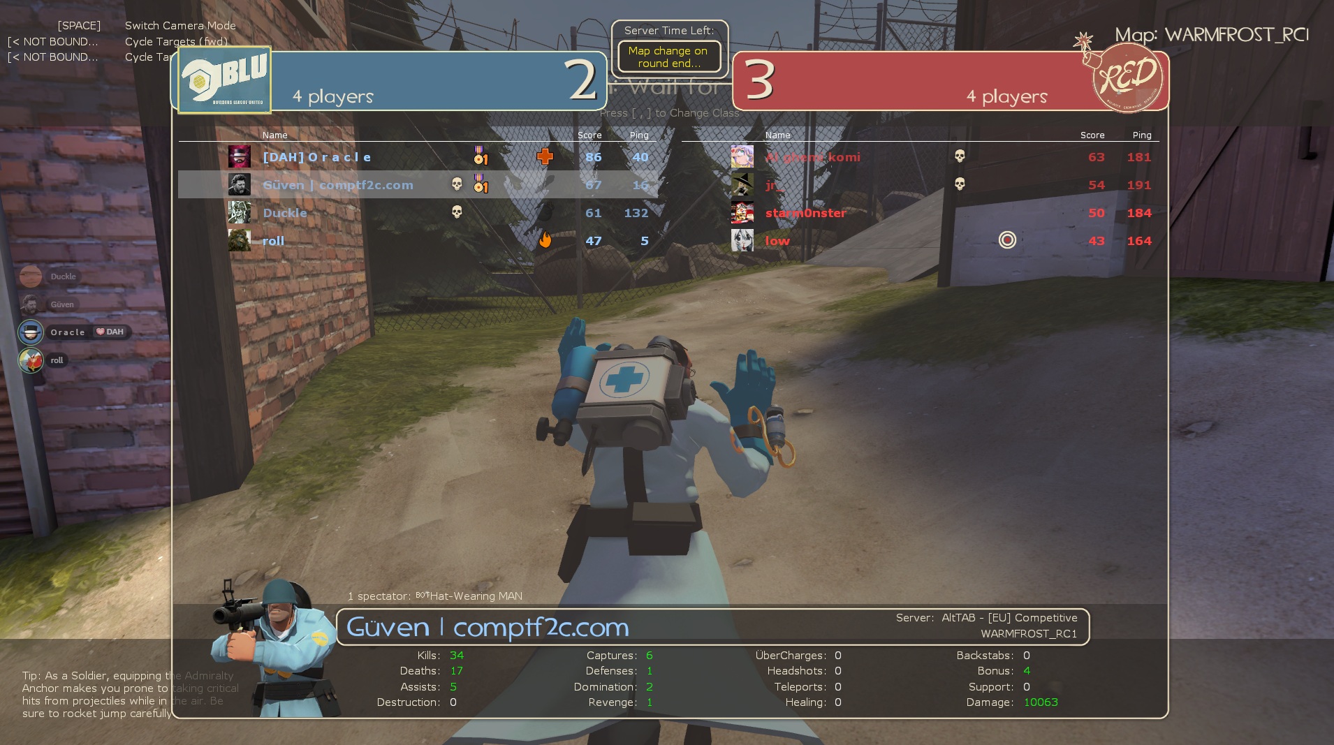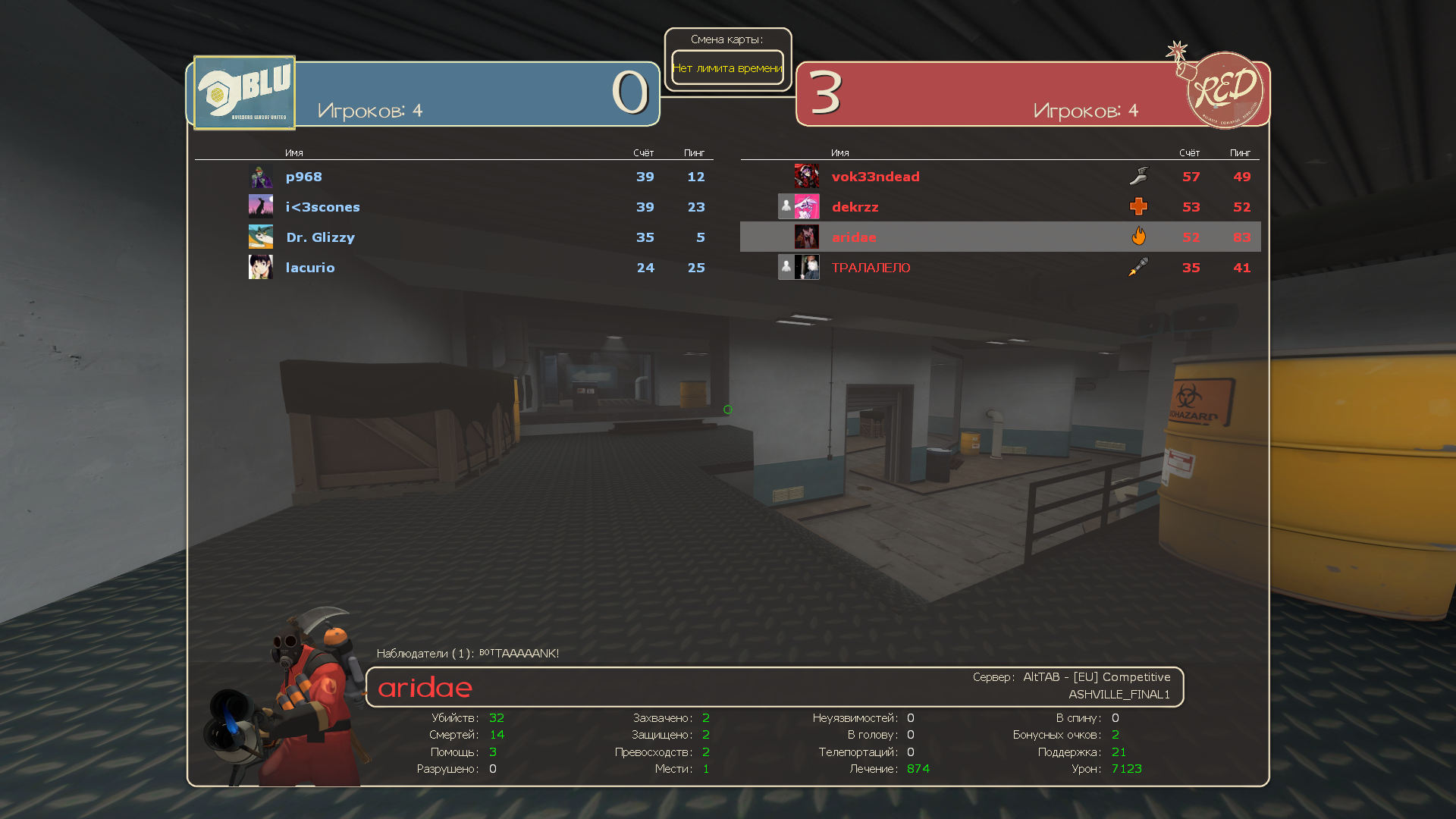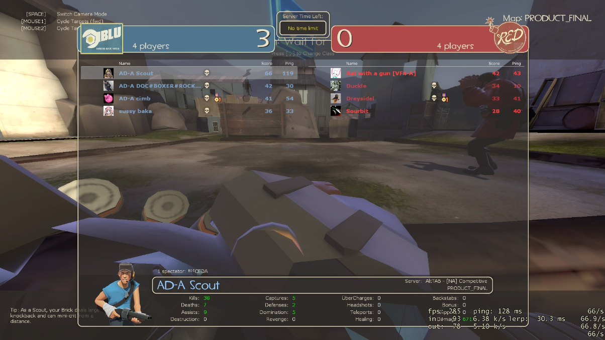 • Three-way Heavy Fist Fight complies to ETF2L rule 8.2. Chekov’s Punch is also allowed to be used, which supersedes the restriction to stock Fists in ETF2L’s rule.