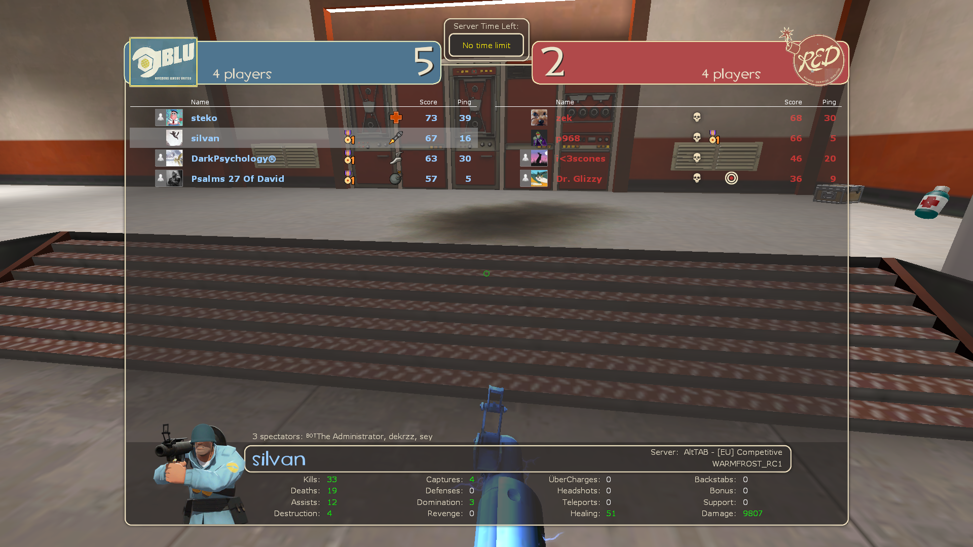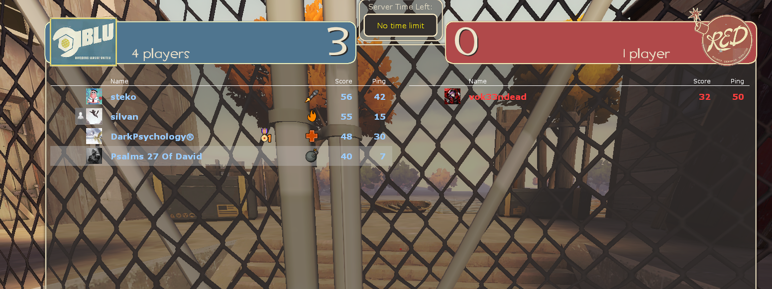 • If the teams tie again after the round-robin, they play a common 4teams match on koth_frigid, with team colors randomly chosen.